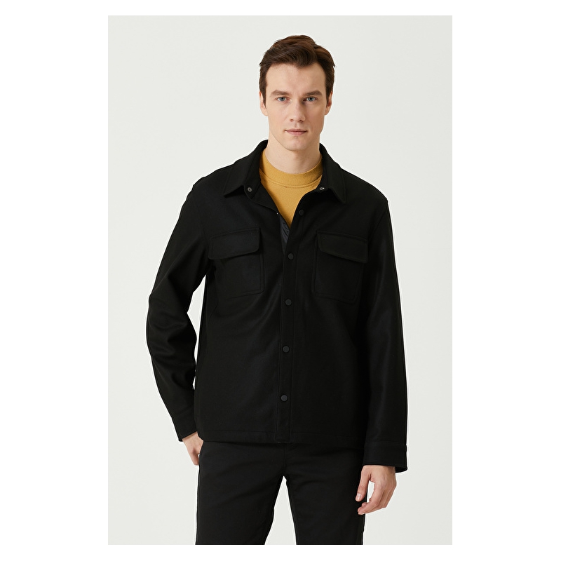 Slim Fit Siyah Süet Mont